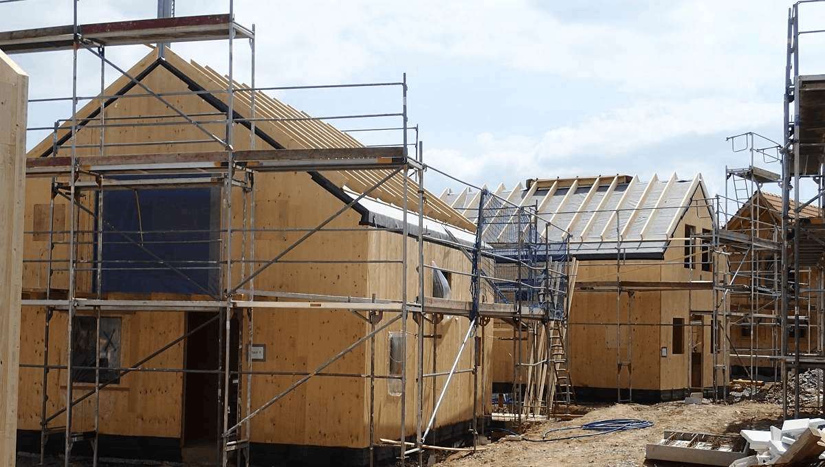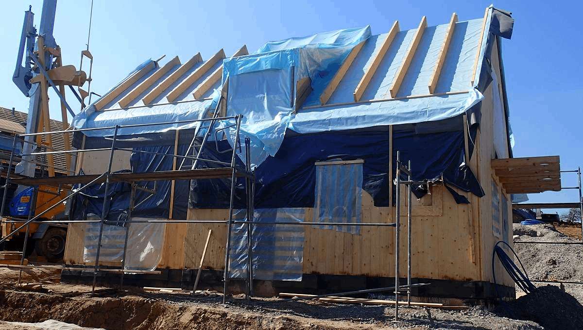 Erstellung von Unter- und Dachkonstruktionen sowie Holzhäusern auf einer Ferienanlage.